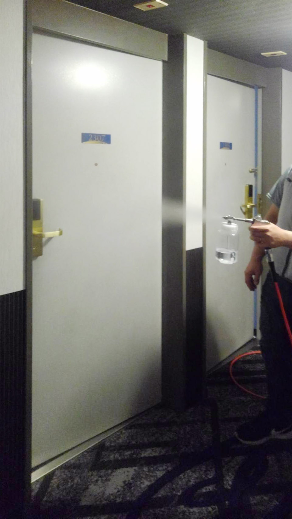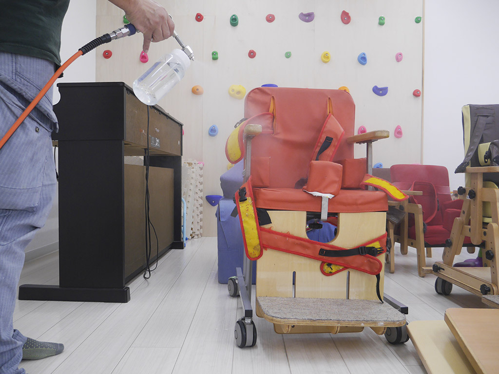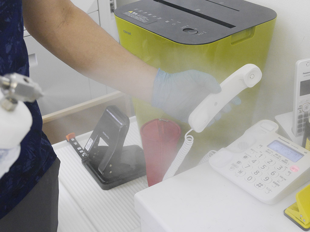 壁や天井・ガラス等の他、ドアノブや手すり・カウンター・椅子・布製品・車両内部への塗布も可能です。