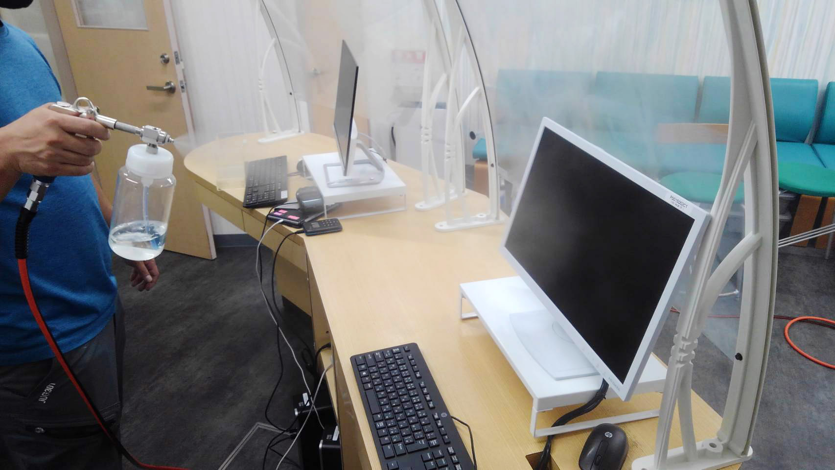 ドアノブ・手すり・エレベーター・カウンター・椅子等への部分施工も可能です。