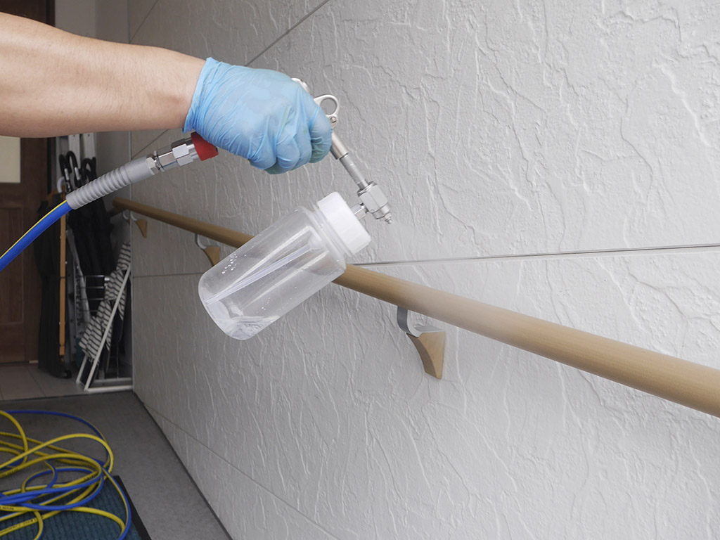 塗料や仕上げ材に抗剤を混ぜ込む「先加工」と、完成品にコーティングする「後加工」があります。