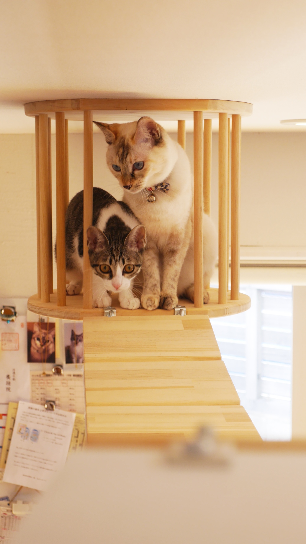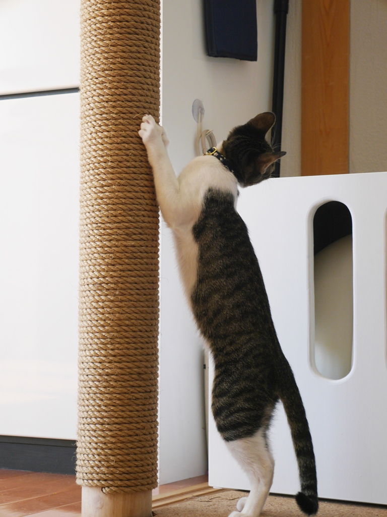 また、思う存分爪研ぎが出来るよう床から天井まで伸びる専用の爪研ぎ柱を設置することで
