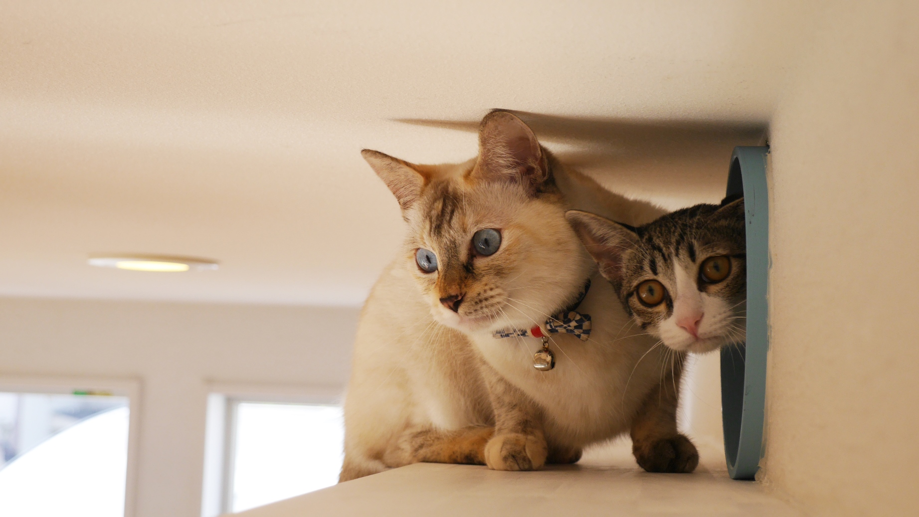 高い所から外の景色を見るのが好きな猫の習性を活かした動線として機能し、高窓に採光・通風以外の新たな価値を与えた。