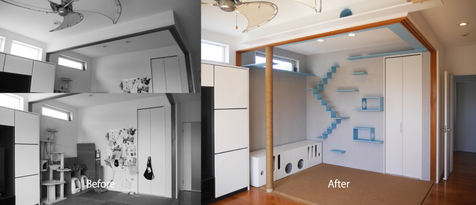 大阪府泉南市で猫2匹と暮らすN様。リビングに面した和室を猫の遊び場としてリフォーム。