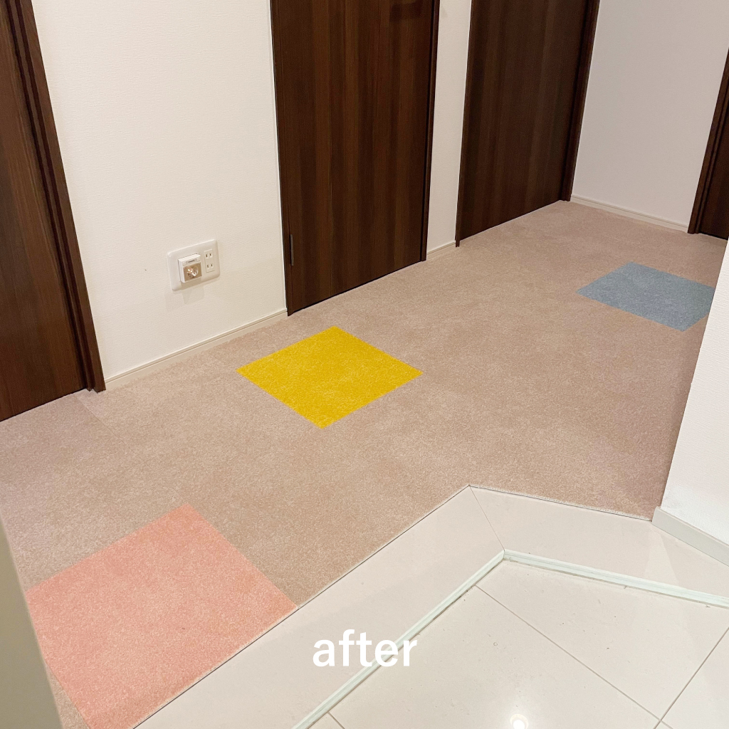 より頻繁に手洗いがしやすい東リのファブリックフロアを施工することとなった。