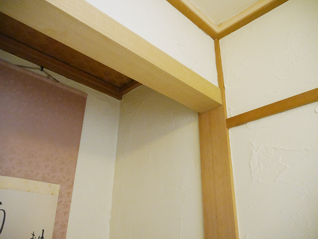 1階リビングと和室、洗面所の天井と壁をまとめて塗り壁にしたいとのご依頼。