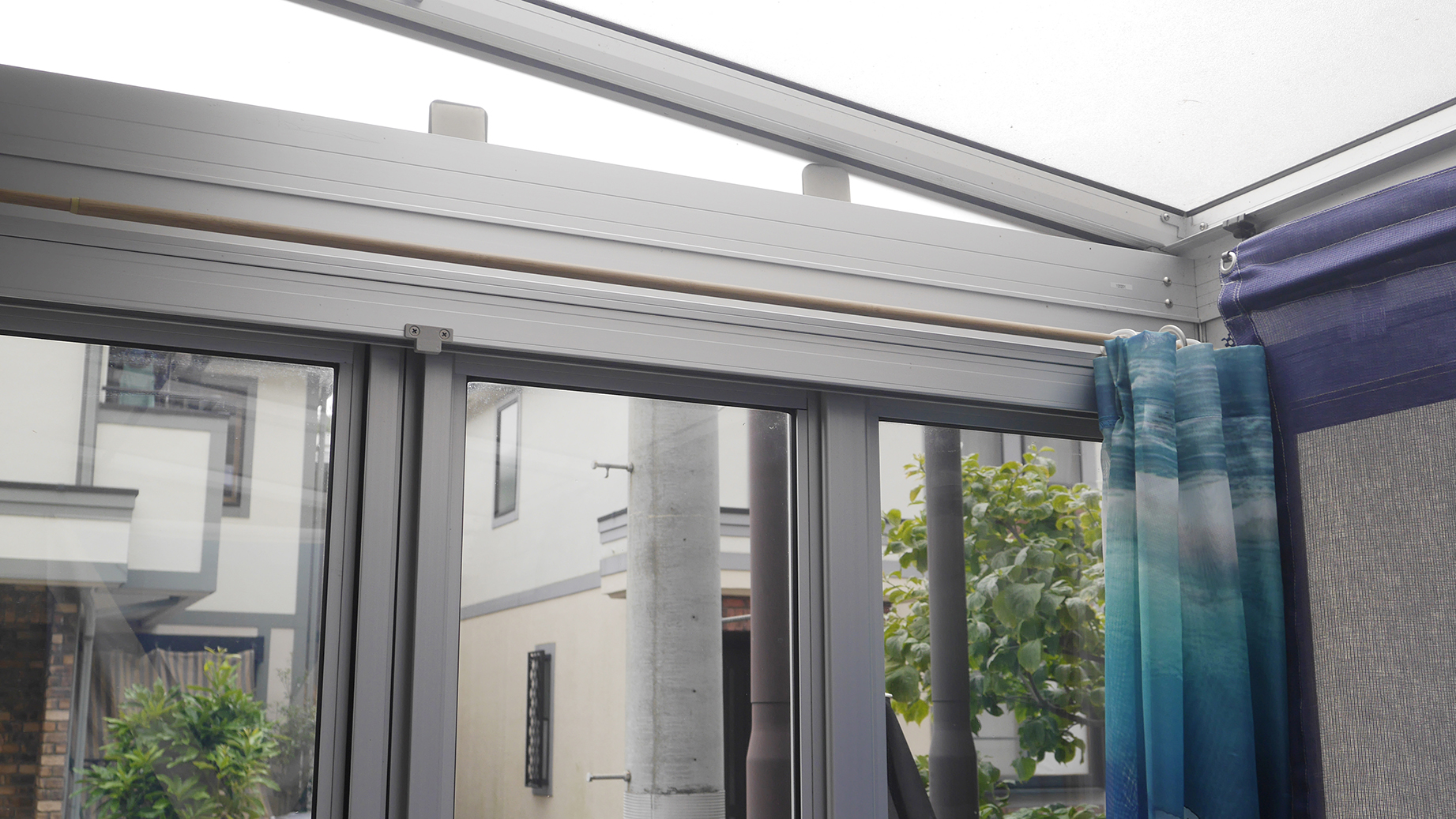 その他、庭に増設されたサンルームでペットが遊べるよう南向きのガラスに遮光シートを張った。