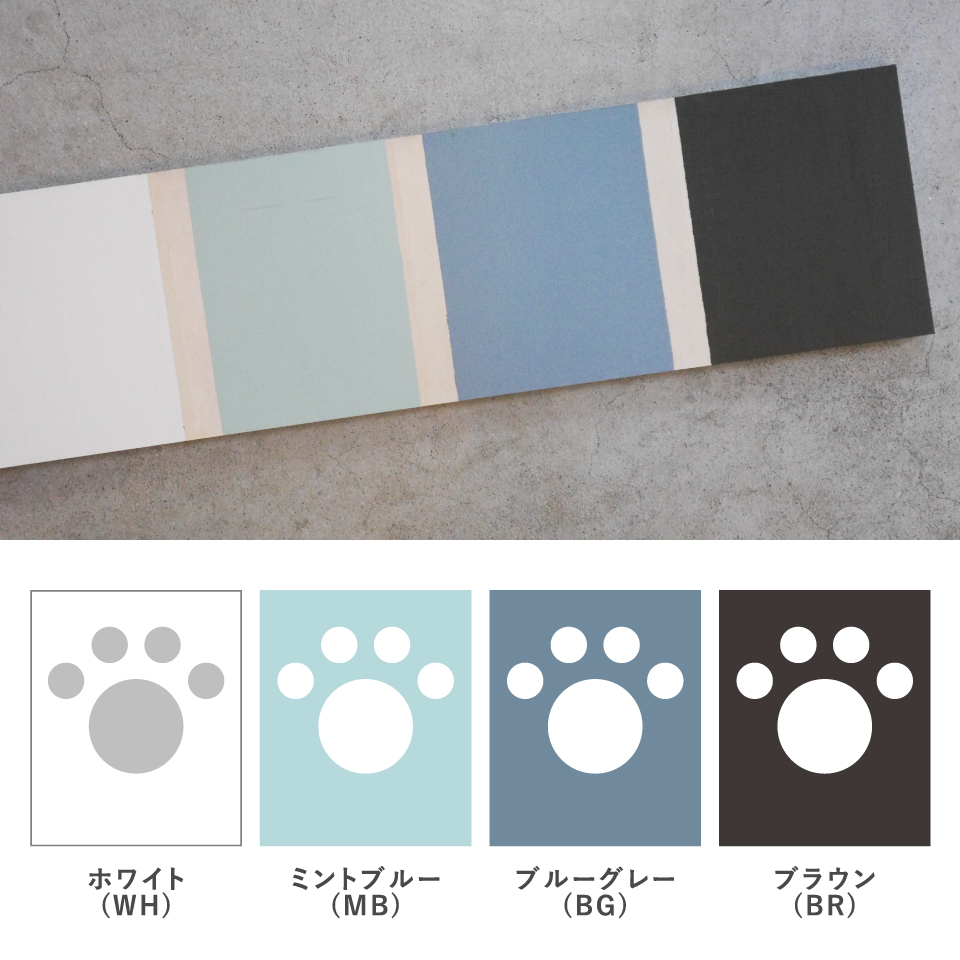 カラーバリエーション:ホワイト(WH) / ミントブルー(MB) / ブルーグレー(BG) / ブラウン(BR)